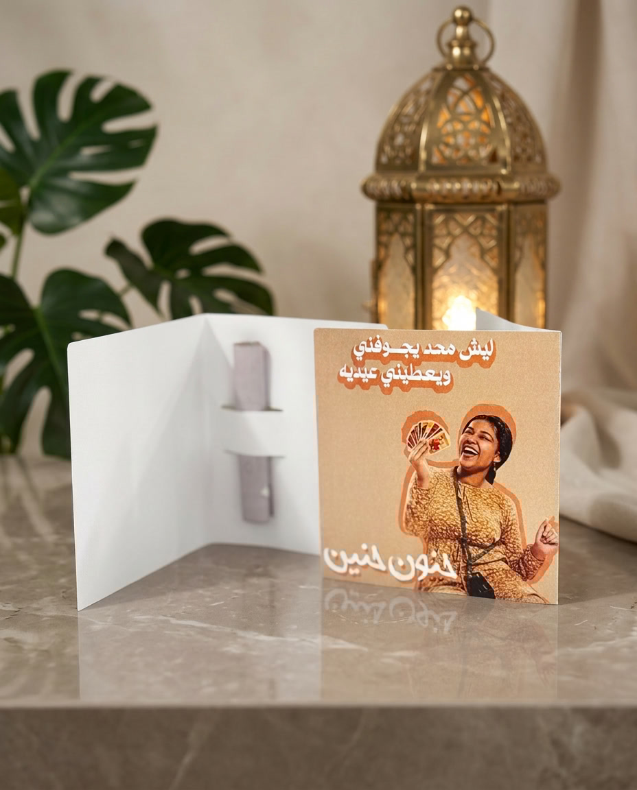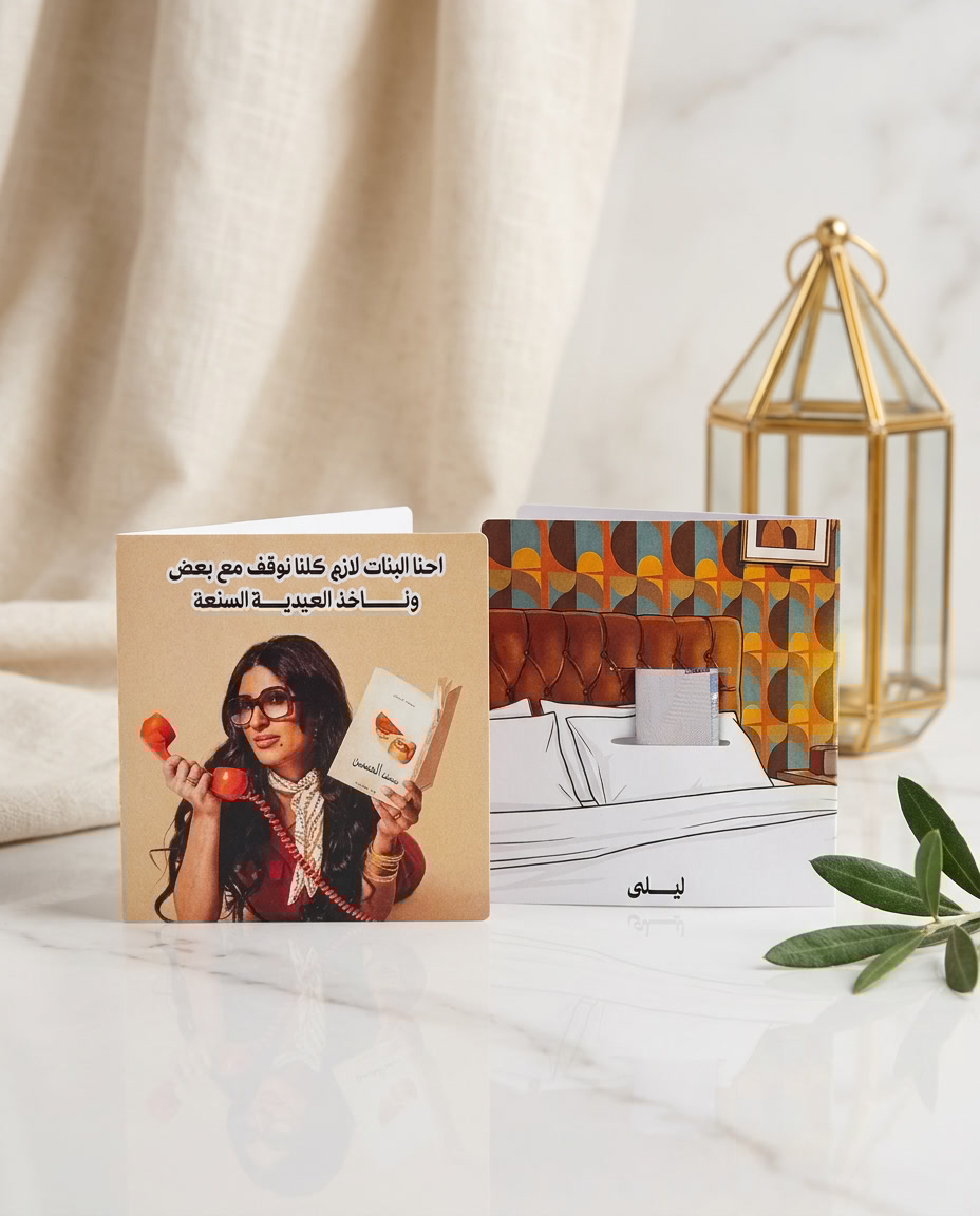 كروت عيدية بطابع كويتي مرح مستوحاة من أجواء المسلسلات الكويتية.